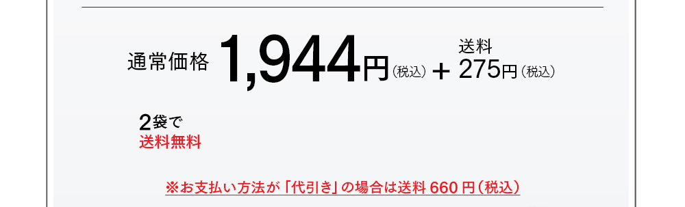 送料は全国一律275円(税込)。2袋同時購入で送料無料となります。