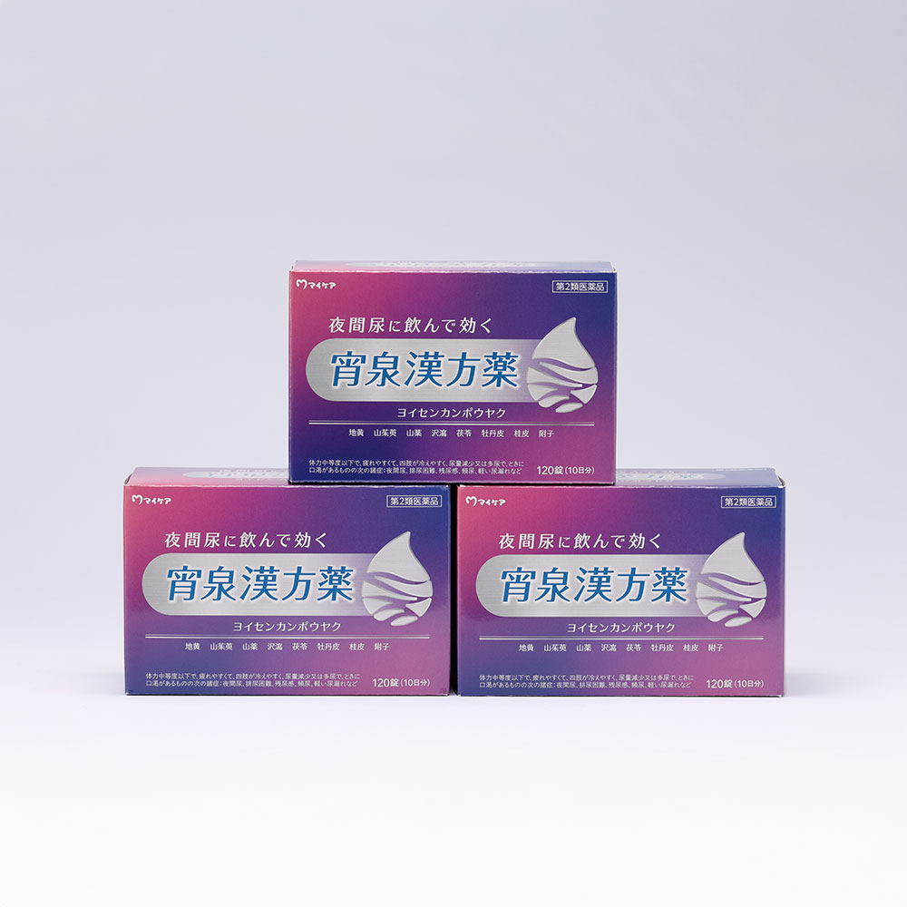 「夜中に何度も…」「トイレが近くて困る…」「お出かけ先でも…」年齢とともに深刻化する夜間尿に飲んで効く、マイケア初の医薬品『宵泉漢方薬』が誕生しました。